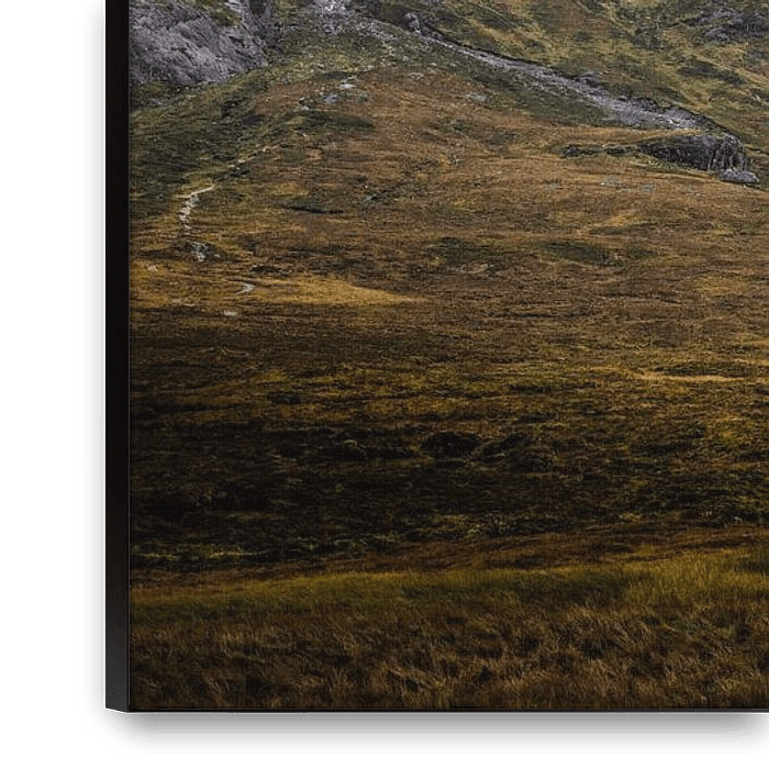 Buy this landscape artwork Lagangarbh cottage in Glen Coe by evening light by Michiel Mulder on canvas, ArtFrame, poster and wallpaper, printed on demand in high quality.