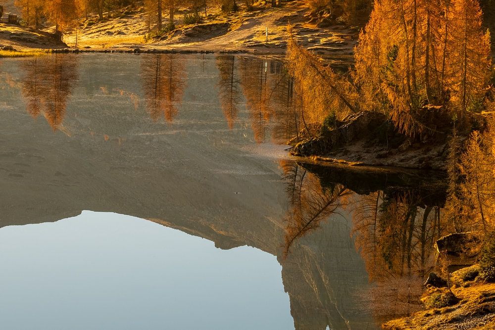 This photo was taken during the sunrise in late October where the autumn colours meet you. Amazing orange colours, tightly mirrored water and great scenery.