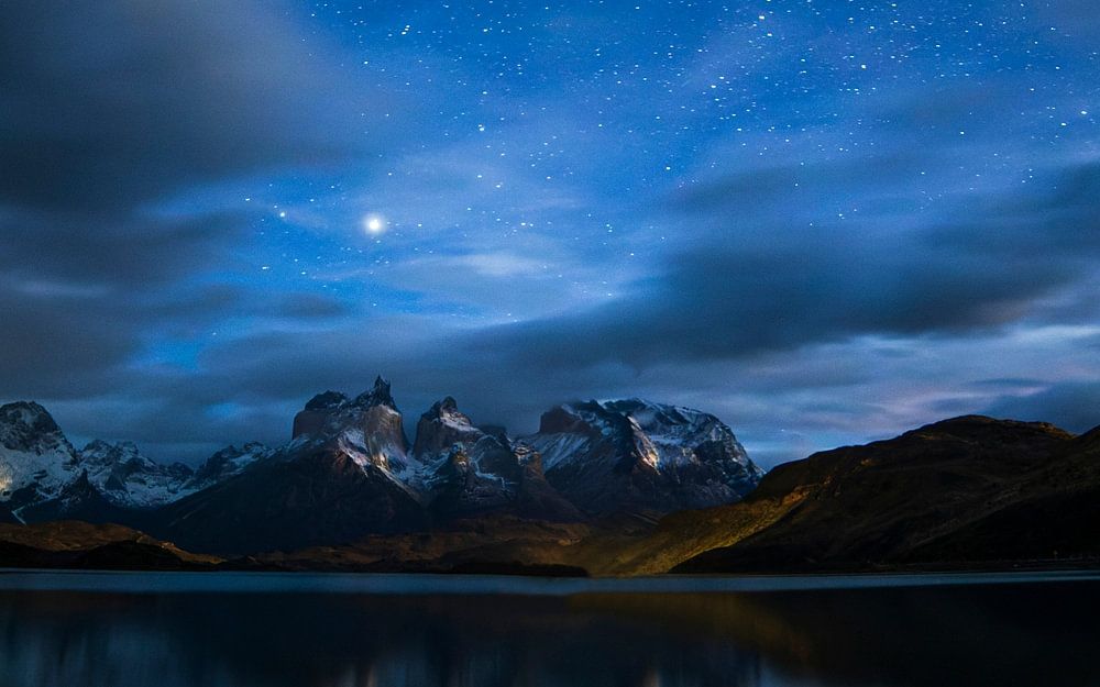 The Torres del Paine park in Chile is known for its jagged mountains. Here is a photo taken at night near Lago Pehoe in the park. For more photos of Patagonian landscapes see my website: http://naturebylennart.com/landscapes-blog/patagonian-landscapes/.