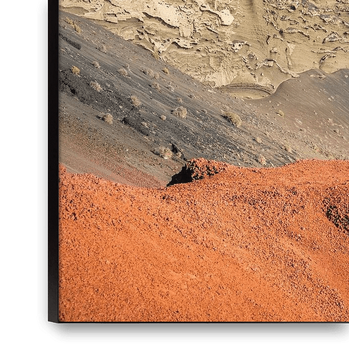 In this photograph, the volcanic beauty of Lago Verde, located on the island of Lanzarote, shines through. The landscape offers a fascinating interplay of colours and textures: the fiery, rust-red ash hills contrast powerfully with the black lava fields and dramatic, weathered cliffs of yellow and grey. The bright green waters of the…
