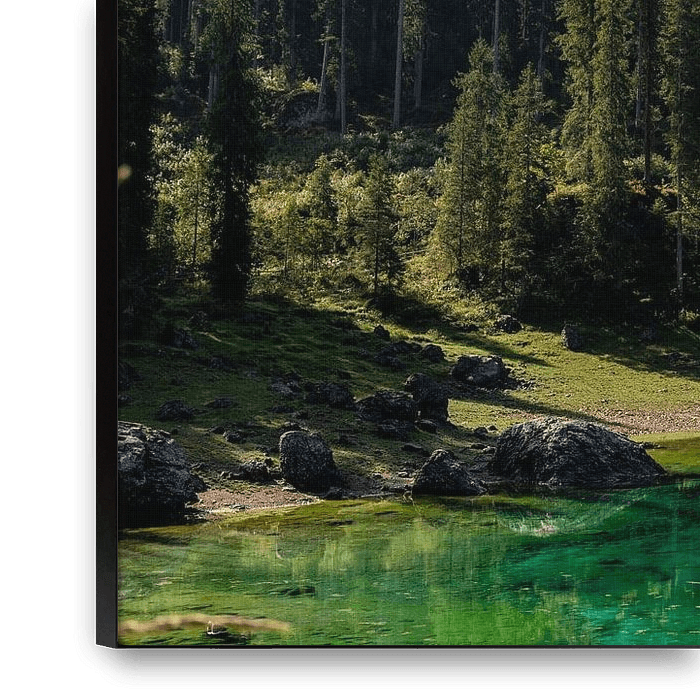 Buy this landscape artwork Lago di Carezza by Jorick van Gorp on canvas, ArtFrame, poster and wallpaper, printed on demand in high quality.