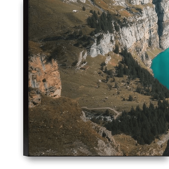 Buy this landscape artwork Lake Oeschinensee | Switzerland | travel photography | landscape by Laura Dijkslag on canvas, ArtFrame, poster and wallpaper, printed on demand in high quality.