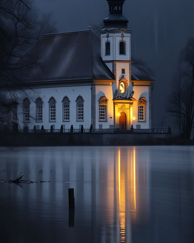 Lake shore, church, fog by Arndt-Christoph Föcks