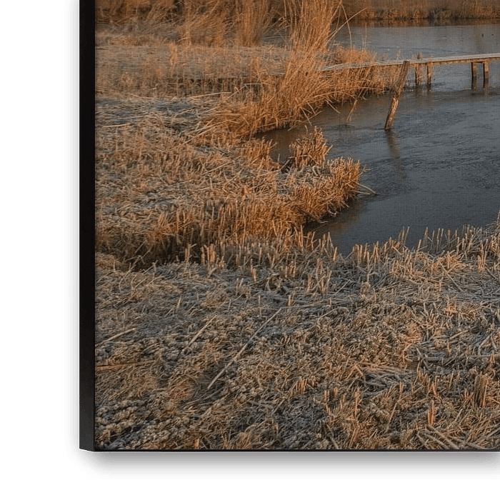 Atmosphere (feeling) at this beautiful sunrise at a small lake with a nice wooden jetty above the water.
