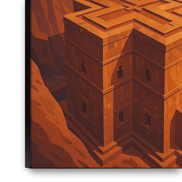 About ‘Lalibela Art Deco Poster – Rock-Hewn Church of St. George at Sunset’ by Travel Shop