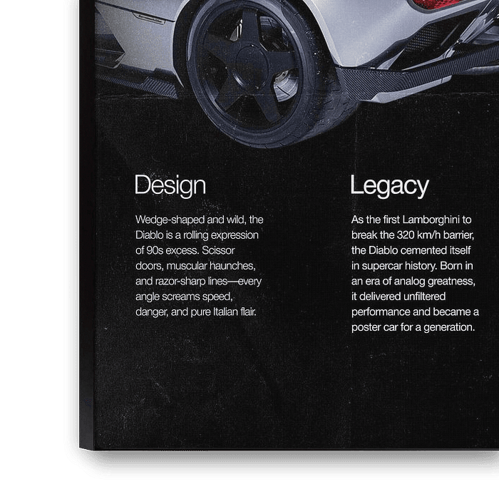 Buy this digital art artwork Lamborghini Diablo Classic by Ali Firdaus as a reproduction on canvas, ArtFrame, poster and wallpaper, printed on demand in high quality.