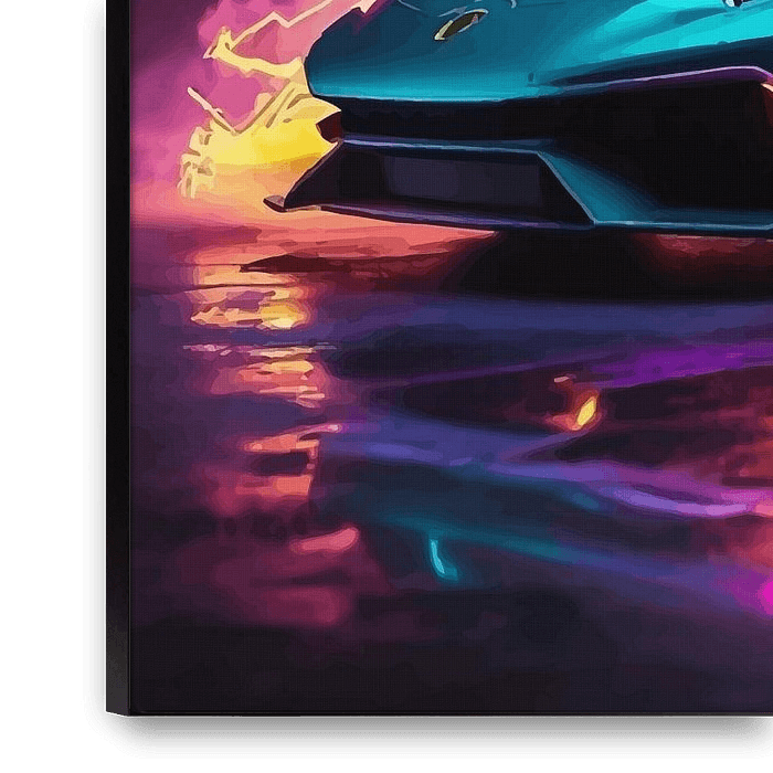 Buy this digital art artwork Lamborghini Huracán – Dark Cyberpunk Neon Performance Art by MIROKKU as a reproduction on canvas, ArtFrame, poster and wallpaper, printed on demand in high quality.