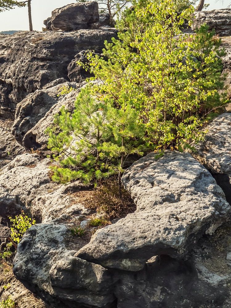 The Lampertstein, which extends in a north-south direction very close to the village of Bielatal, has three viewpoints, which are quite well distributed. At the southern tip there is a view to the Schneeberg, while at the northern corner the view widens over from Königstein fortress to the Zschirnsteine. In the middle, where this picture was taken, the eyes look up to the opposite side of the Bielatal to the Bernhardstein. Here at Lampertshorn, however, you have to stretch a bit to really get a good, unobstructed view, because rocks and trees get in the way a bit.