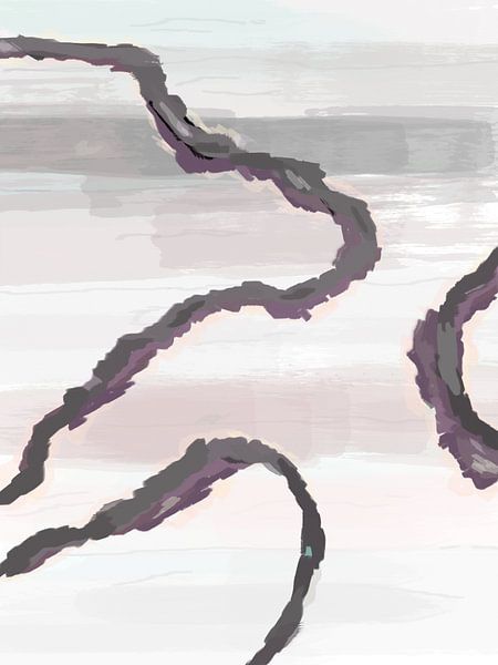 A digital painting inspired by abstract art and land art. Suitable for a setting that isn’t too colourful, but does need a touch of warmth. Subtle shades of colour interwoven with greys to create depth and warmth. It may look abstract, but you could also see something in it, such as tree branches or shapes in a landscape.