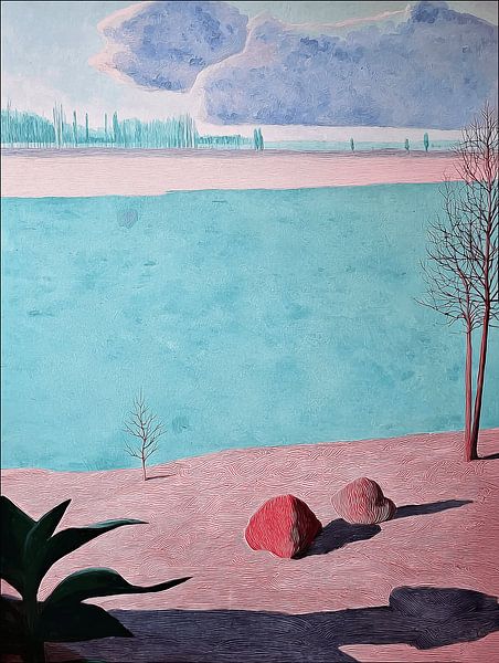 KAVE shows a hushed, abstract landscape in which space, tranquillity and imagination come together. Using simplified forms and open composition, the work balances between recognition and abstraction, without naming a specific place. The artwork is digitally constructed and inspired by traditional materials and graphic techniques, with…