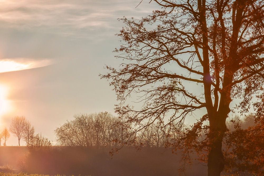 An atmospheric photo of a (Dutch) Limburg landscape at sunrise. So as not to miss the first rays of sunlight over the land early on the scene, capturing a warm well with a little mist on a very cold morning. The frozen mustard seed in the foreground gives a nice warm yellow colour.