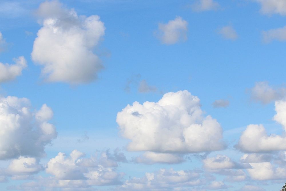 Beautiful green pastures under a big blue summer sky near Kollum in Friesland in the Netherlands. Typical Dutch landscape scenery. Minimalist travel landscape photography