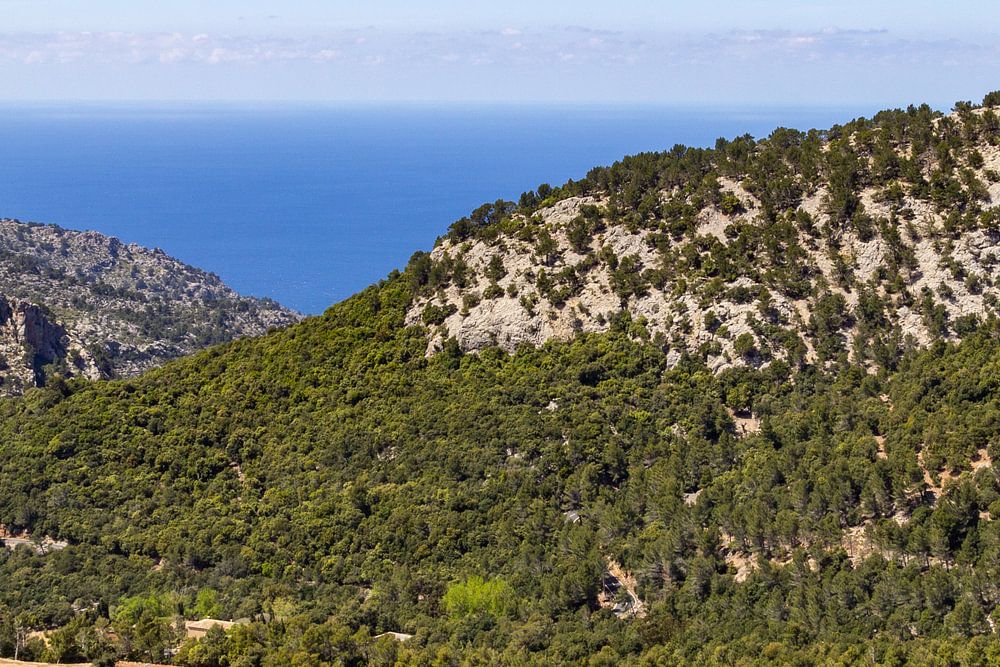 Landscape in the north of the Balearic Island Mallorca with the Mediterranean Sea in the background