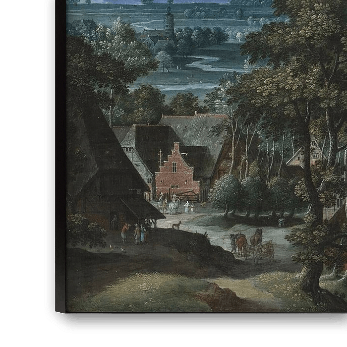 Buy Landscape with a View of Antwerp, Hans Bol as a reproduction on canvas, ArtFrame, poster and wallpaper, printed on demand in high quality.