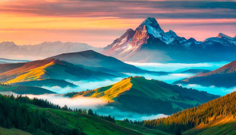 Buy this landscape artwork Landscape with mountains by Mustafa Kurnaz on canvas, ArtFrame, poster and wallpaper, printed on demand in high quality.