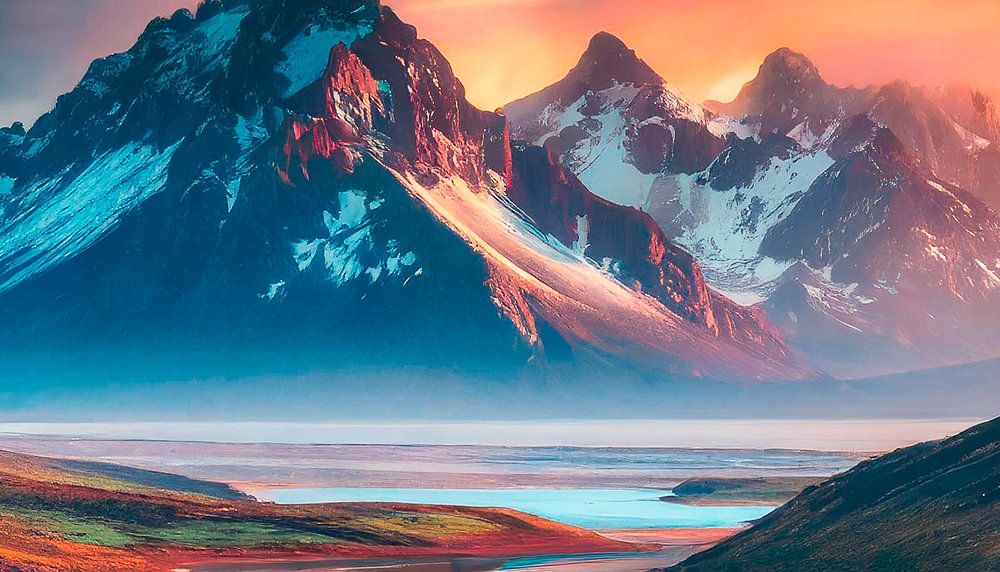 Buy this landscape artwork Landscape with mountains by Mustafa Kurnaz on canvas, ArtFrame, poster and wallpaper, printed on demand in high quality.