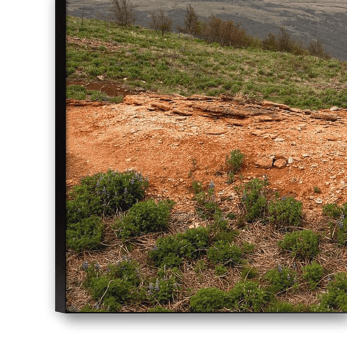 Buy this landscape artwork Landscape with orange-coloured ground in Iceland | Travel photography by Kelsey van den Bosch on canvas, ArtFrame, poster and wallpaper, printed on demand in high quality.