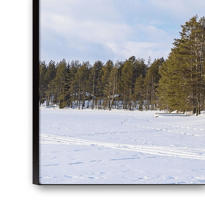 Buy this landscape artwork Landscape with snow in winter in Kuusamo, Finland by Rico Ködder on canvas, ArtFrame, poster and wallpaper, printed on demand in high quality.