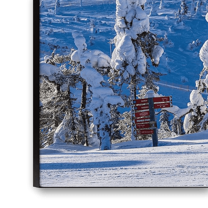 Buy this landscape artwork Landscape with snow in winter in Ruka, Finland by Rico Ködder on canvas, ArtFrame, poster and wallpaper, printed on demand in high quality.