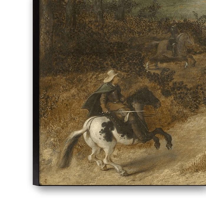 Buy Landscape with travellers, robbed by robbers, Sebastiaen Vrancx as a reproduction on canvas, ArtFrame, poster and wallpaper, printed on demand in high quality.