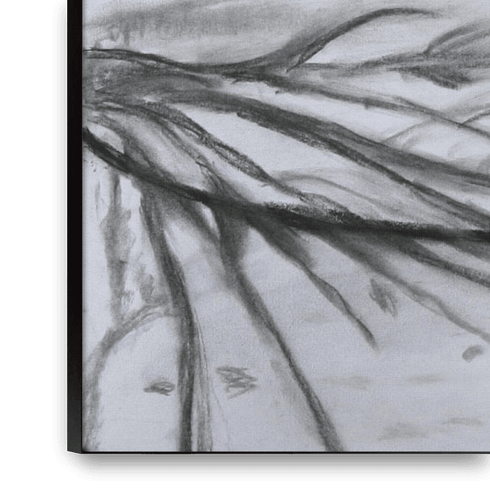 Landschap in houtskool (zwartwit). Mooie schaduwwerking. Boom met takken in de sneeuw.