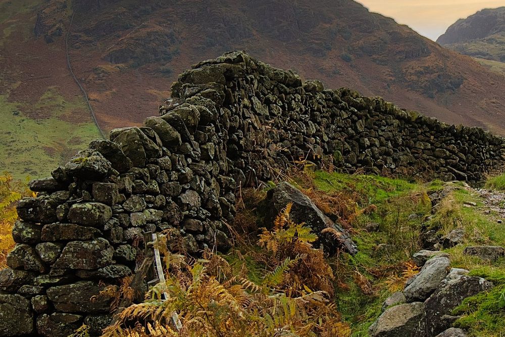 On this walk through the Langdale Valley, I encountered this crumbling wall. In the background, the mountains and soft sunlight.