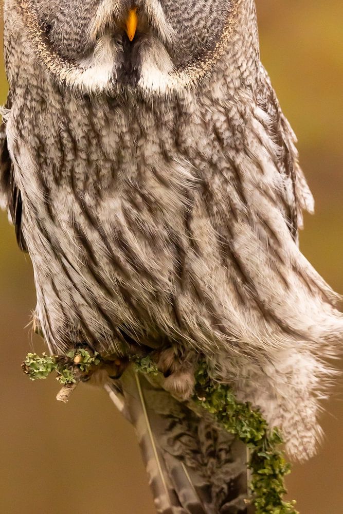 The lapland owl (Strix nebulosa) is an imposing species of owl in the true owl (Strigidae) family. This owl is found in the coniferous and mixed forests of the Northern Hemisphere. Although the owl is named after Lapland, it has spread to all northern parts of the earth in addition to Scandinavia. Adult lapland owls can be recognized by their large round head with the gray face (veil), and the piercing, yellow eyes surrounded by dark circles.The lapland owl is known for its ability to locate small rodents, even under a deep layer of snow.