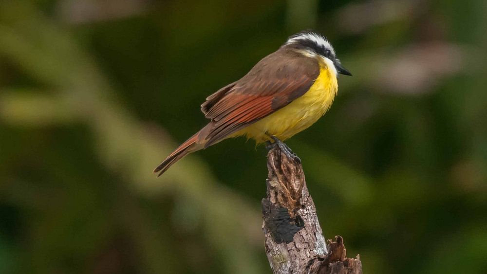 Central America; Latin America; Costa Rica; Limón; Cantón Pococí; City:Colorado; Tortuguero National Park; Great kiskadie; Pitangus sulphuratus; Great Kiskadee; Gretel; Insectivores; Songbird; Tyrants; Animalia; Chordata; Aves; Passeriformes; Tyrannidae; Pitangus