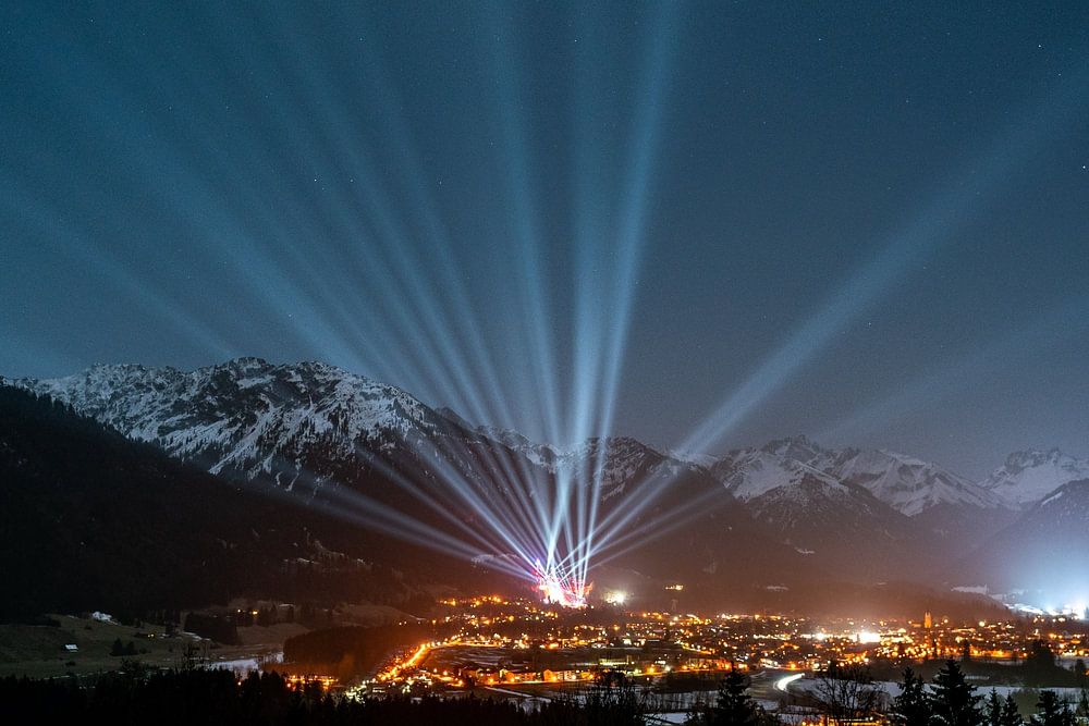Laser show on the ski jump in Oberstdorf by Leo Schindzielorz