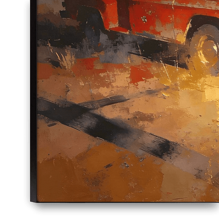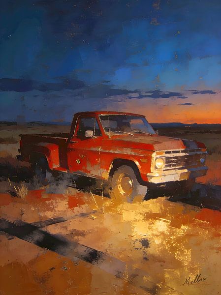 Last Light on the Road is a timeless fine-art painting depicting an old pickup truck resting quietly at dusk within a wide rural landscape. Abstracted yet recognizable, the truck feels integrated into the land rather than dominant, suggesting long days, quiet endings, and modern western life.
