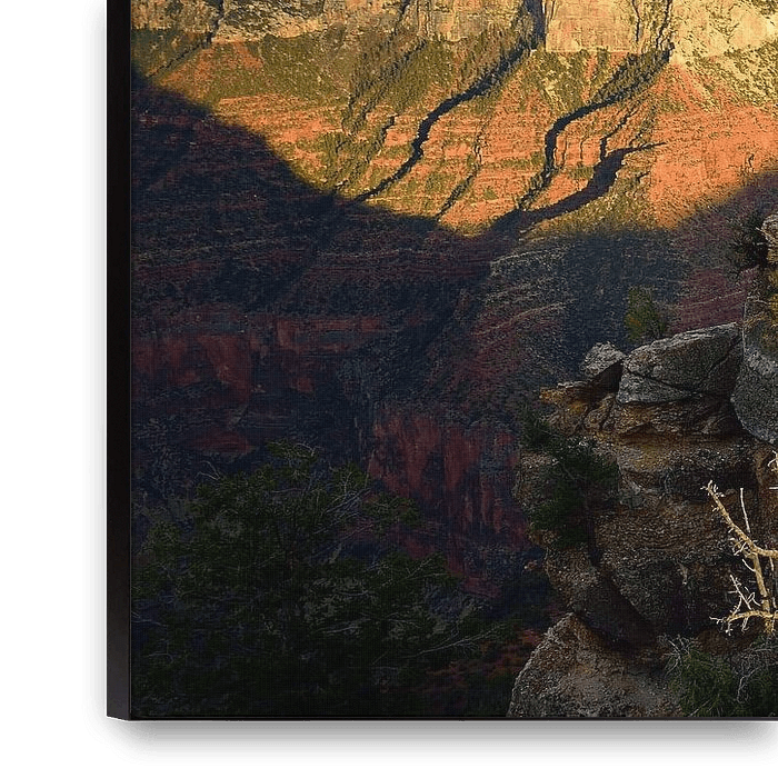 Sunset is rapidly approaching at Bright Angel Point in Grand Canyon National Park, Arizona, USA. The weather cleared up as the dark clouds moved away and the last rays brighten up the canyon ever so nicely.