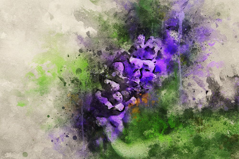 An intriguing plate shot from above in abstract form with splashes surrounded. This purple lavender flower therefore stands out thanks to the interesting angle in which the photo was taken. With paint splash effect for extra effect. Who would have thought that the flowers from their own garden could be so exciting?