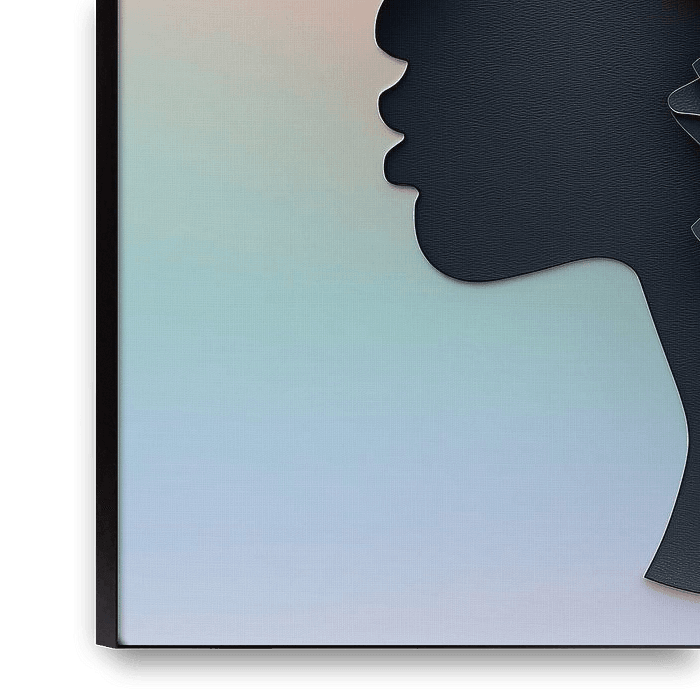 A contemporary work of art in which overlapping textures and soft colours come together to create a serene human silhouette. This elegant design exudes tranquillity and sophistication, making it an inspiring and striking addition to any living or working space. Perfect for creating a modern and serene atmosphere.