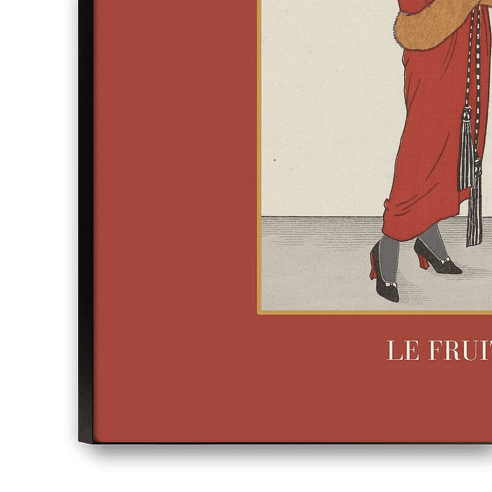 A historical fashion print with a modern twist: "Le Fruit". Inspired by Art Deco, a style movement that emerged in the 1920s. New businesslike style mixed with modern clean lines and colors.