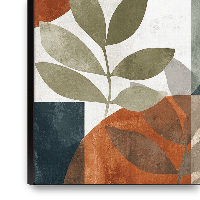 Details: leaves, abstract painting, geometric shapes, modern art, earth tones, natural design, interior decor, minimalism,…