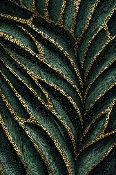 Leaf Structure in Gold and Emerald Abstract Nature Pattern by Eva Lee