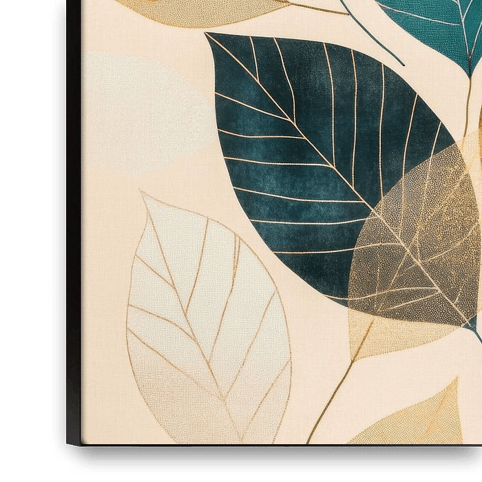 A harmonious interplay of soft colours unfolds as elegant leaves in different shapes and textures dance together. From deep blue-green to warm gold tones, they radiate calm and vibrancy. The fine veins of the leaves tell stories from nature and invite the viewer on a journey into the grace of the plant world.
