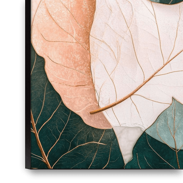Delicate veins stand out on delicate leaves in soft earthy tones and cooling green. This natural collage of textures and colours evokes a sense of calm and harmony, while the light dances playfully across the leaf surfaces and allows their fine details to shine. A harmonious interplay of nature!