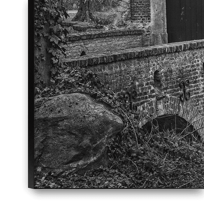 Black and white image of Lemiers Castle in the South Limburg Hill Country region (Netherlands).