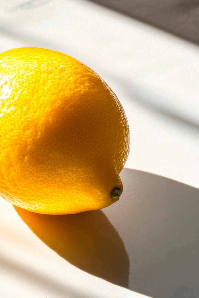 A bright yellow citrus fruit glistens in the soft morning light, while its shadows dance on the shiny marble surface. The vibrant colour and harmonious contrasts add lively charm and freshness to a bright kitchen. Ideal for enriching the room with a sense of pleasure and vibrancy!