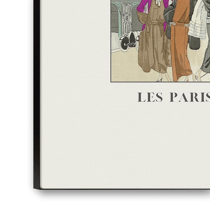 A historical fashion print with a modern twist: "Les Parisiens". Inspired by Art Deco, a style movement that emerged in the 1920s. New businesslike style mixed with modern clean lines and colors.
