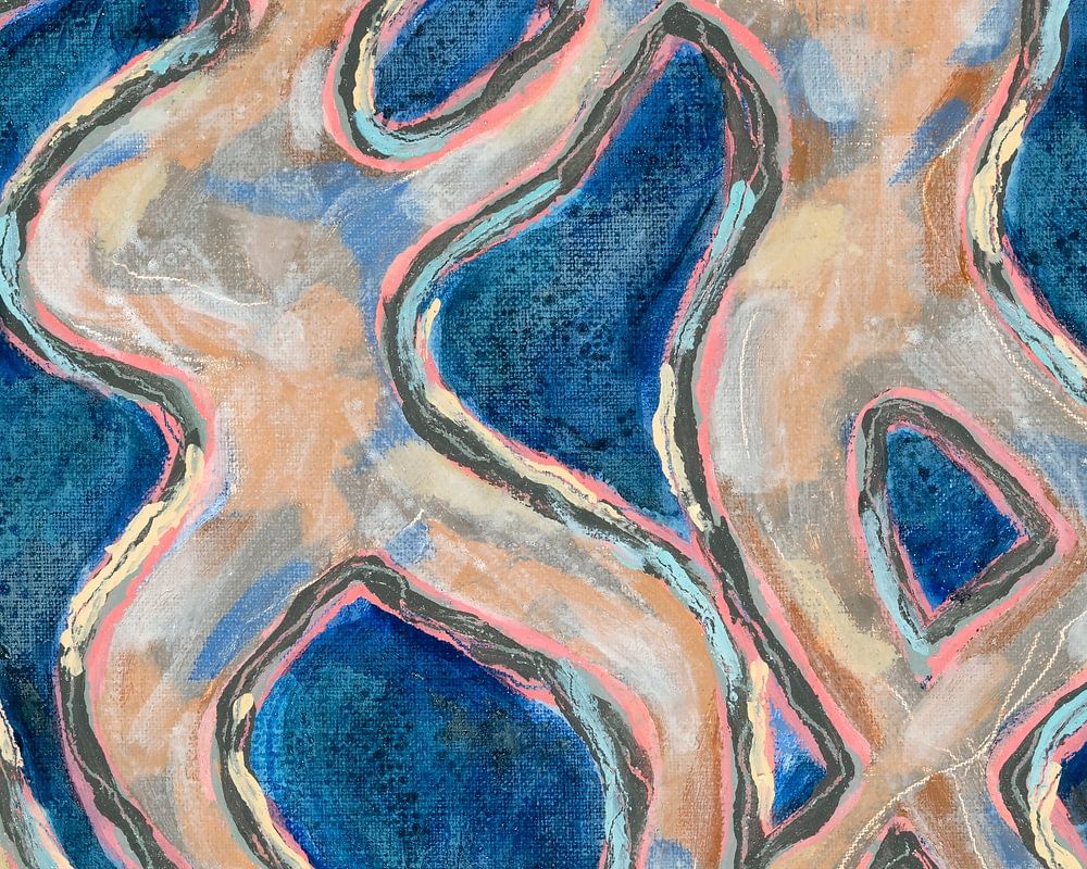 This is a painting of "people in abstraction" or I also like to describe them as "a suggestion of people". I love painting human forms and combining different poses. Inspired by dancers, I made this 'structure' of people. The painting is influenced by cave paintings from prehistoric times where people also made images with earth pigments. You can make your own story about the interaction the people have with each other and the emotions they show you.