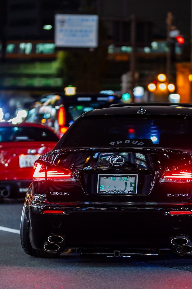 A tuned and decked-out Lexus drives through the Akihabara district in Tokyo Japan as part of the Liberty Walk event.