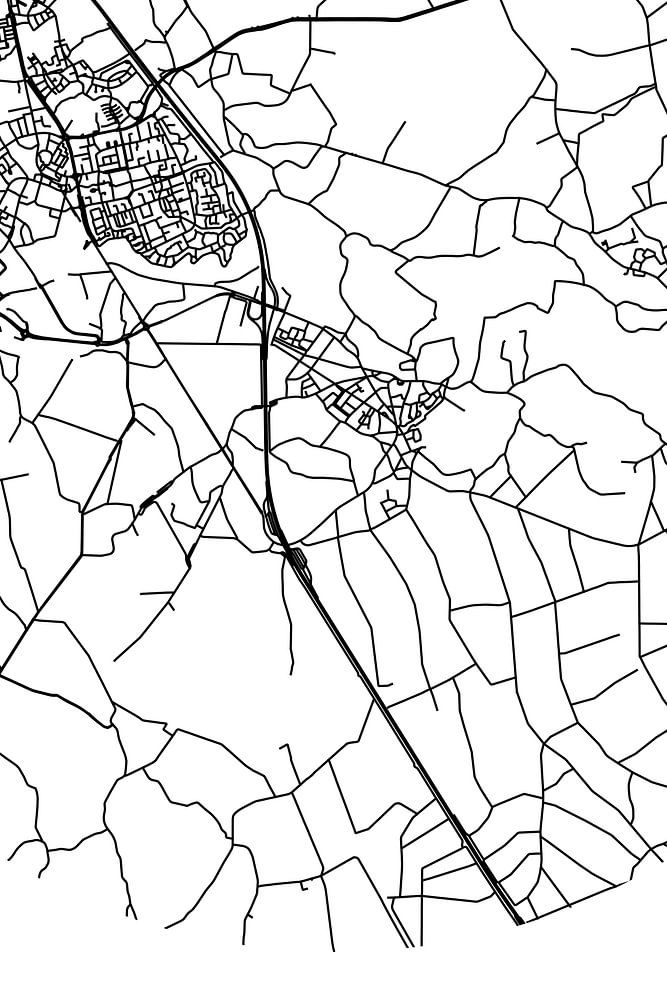 Black and white map, street map or street plan of Liempde. Liempde is located in the municipality of Boxtel, province of North Brabant. The city map includes all public roads in Liempde. Furthermore, the map features the coordinates of the center of Liempde.