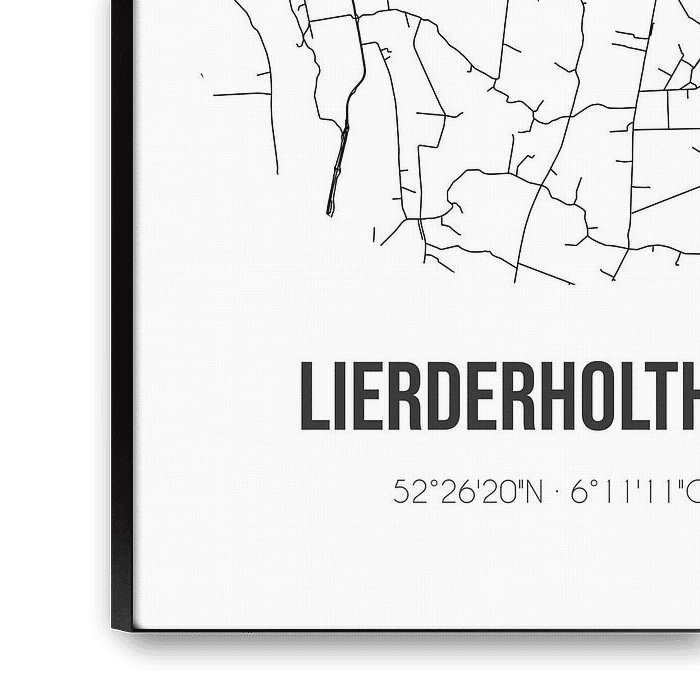 Black and white map, street map or street plan of Lierderholthuis. Lierderholthuis is located in the municipality of Raalte, province of Overijssel. On the city map all public roads in Lierderholthuis are included. Furthermore, the map is provided with the coordinates of the center of Lierderholthuis.