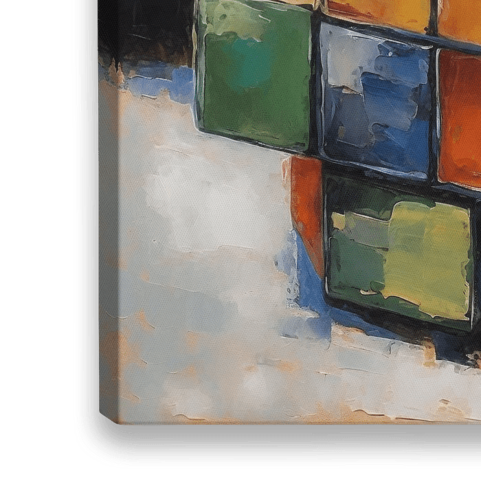 Impressionistic colourful painting with a Rubik's cube with some cubes missing and some distorted. Conceptual art with a wink ;)