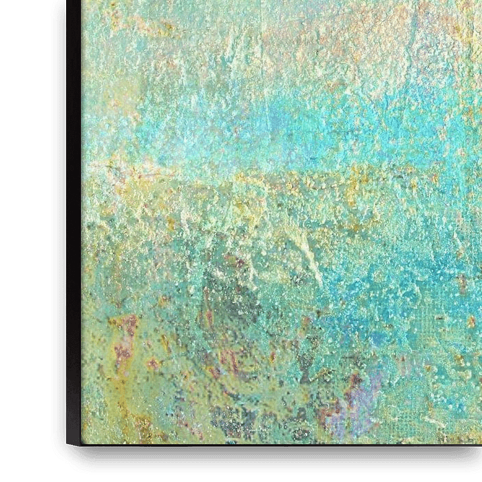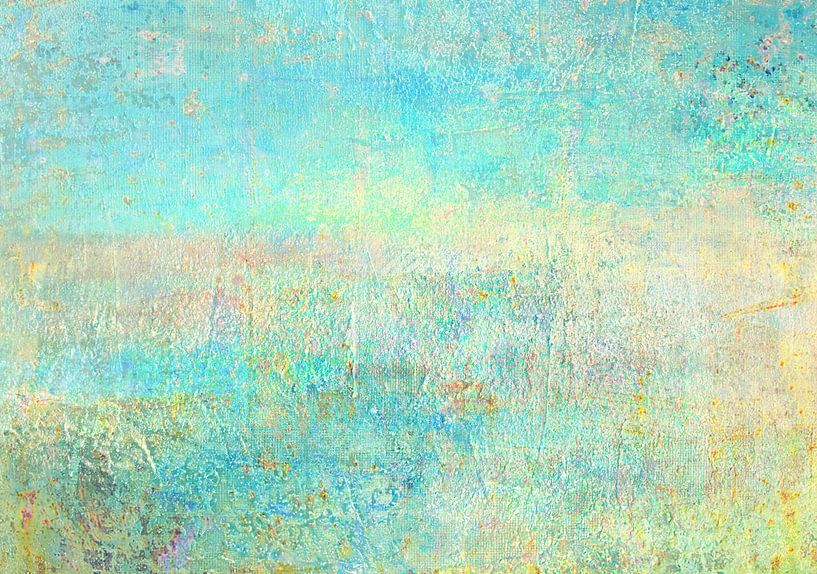 Silence - tranquillity . A barely discernible horizon seduces the eye into the realm of fantasy. The colours turquoise and golden yellow create a noble look.