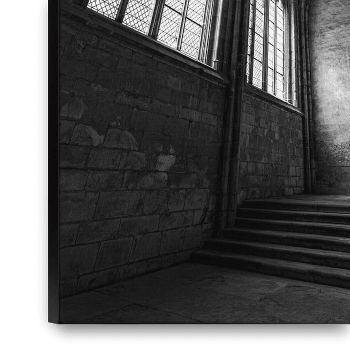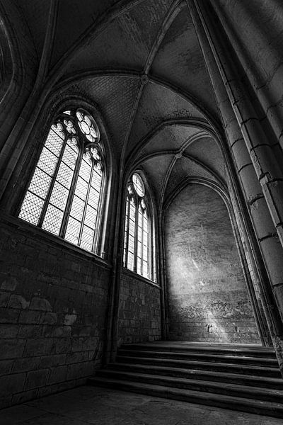 From the series "Stone and Silence": Light falls through tall windows and draws lines across the room. The slanted perspective enhances the depth and allows architecture and silence to interact.