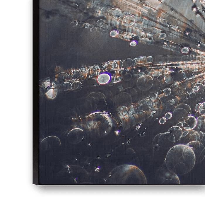 In this quiet image, dewdrops capture the soft light of the morning, resplendent in natural shades of beige, bronze and soft green. For a moment, the drops seem to float between earth and sky - tiny mirrors in which the landscape reflects itself.