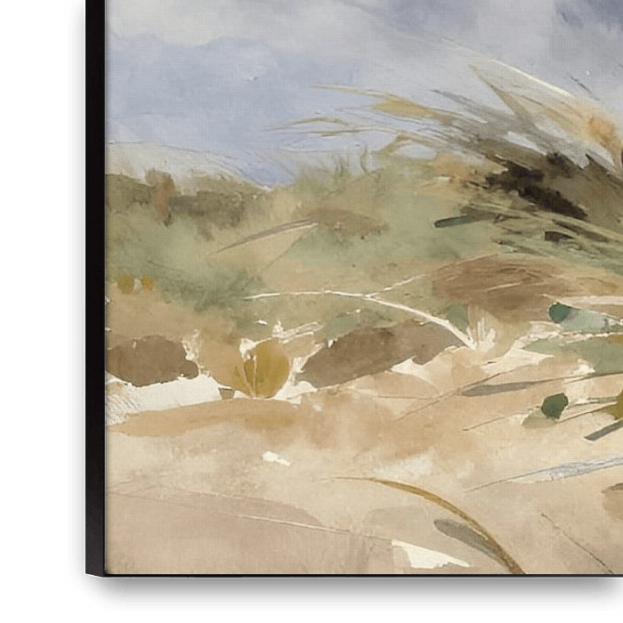 A striking lighthouse rises above a windswept dune landscape. The loose watercolour technique emphasises the light, the sky and the movement of the grasses. The muted colours convey a natural, authentic coastal atmosphere. This piece is particularly well suited to rooms with a maritime or Scandinavian interior design style and exudes a…